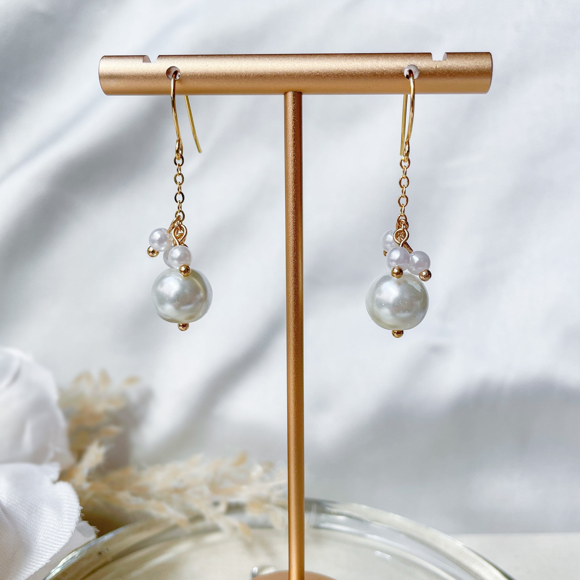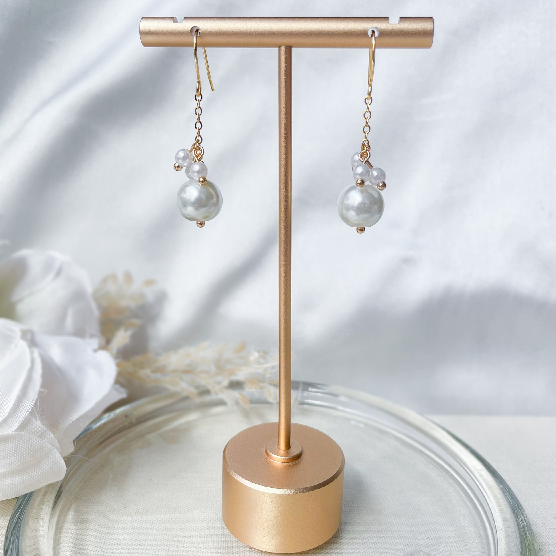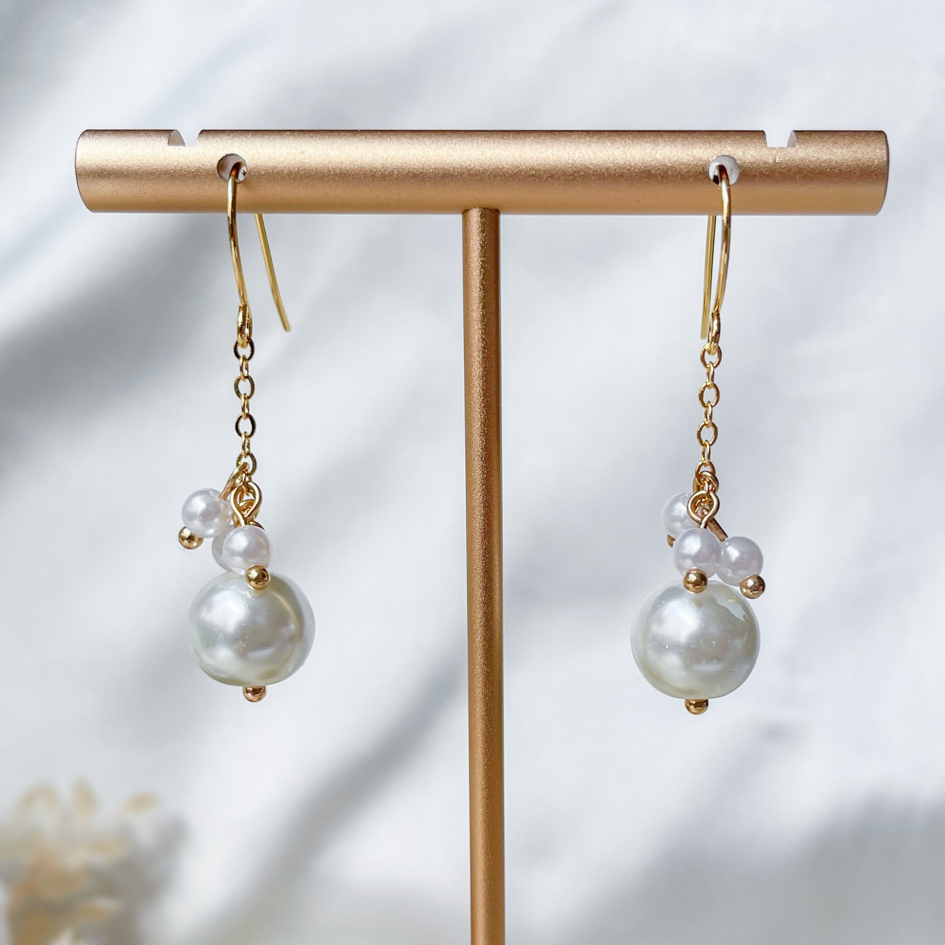 Pearl dangle earrings.