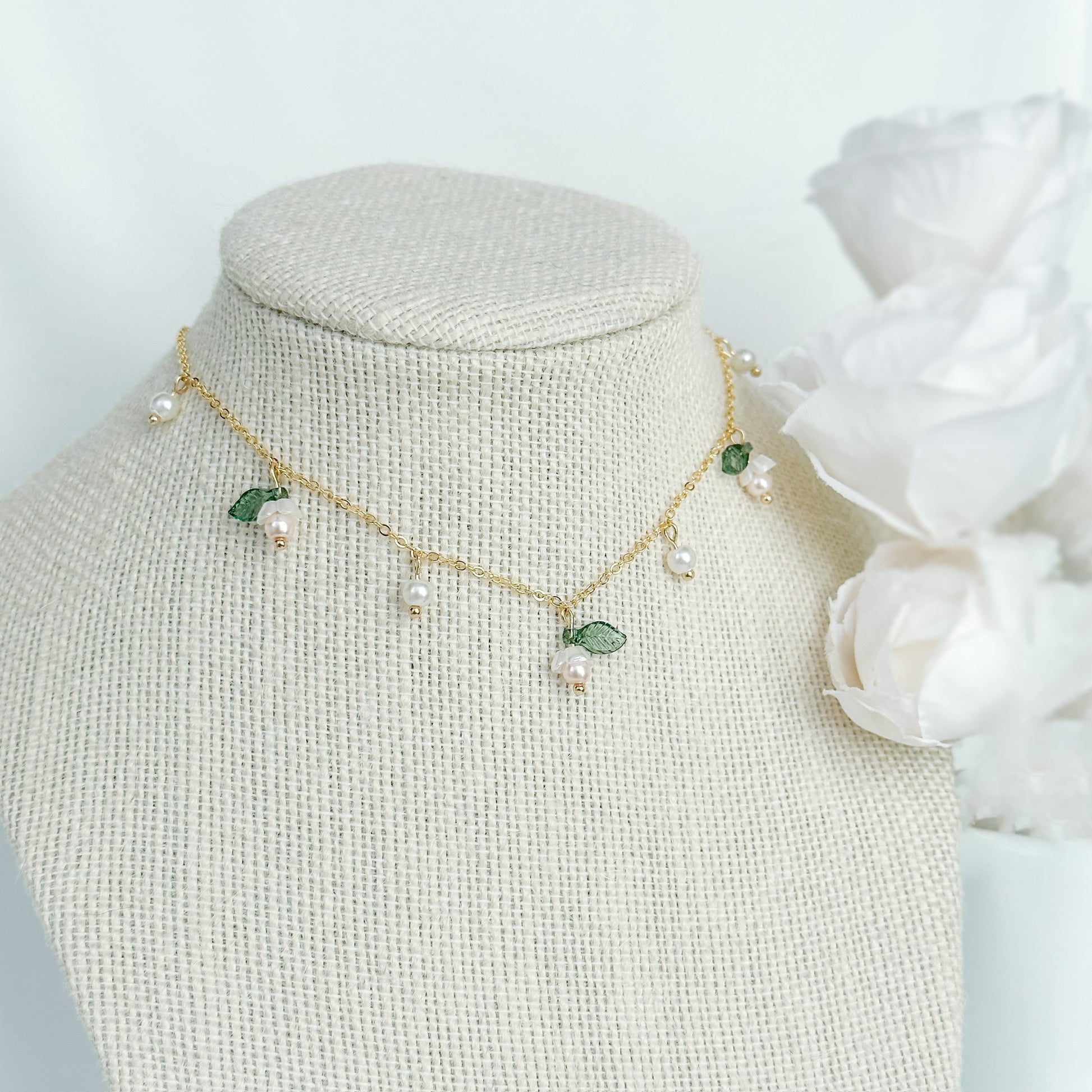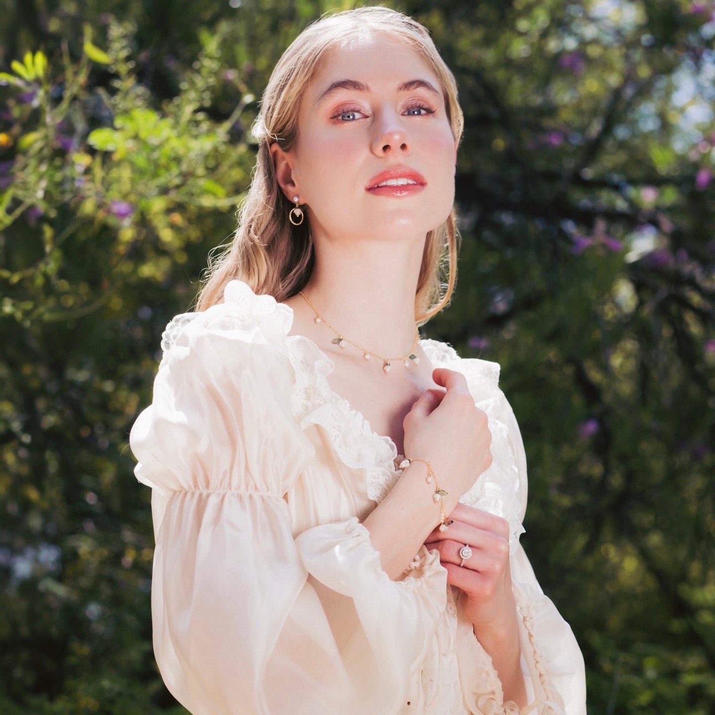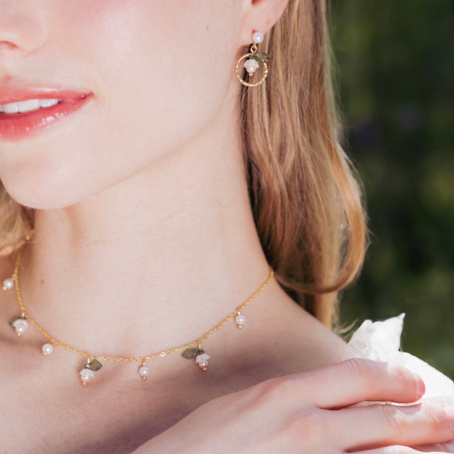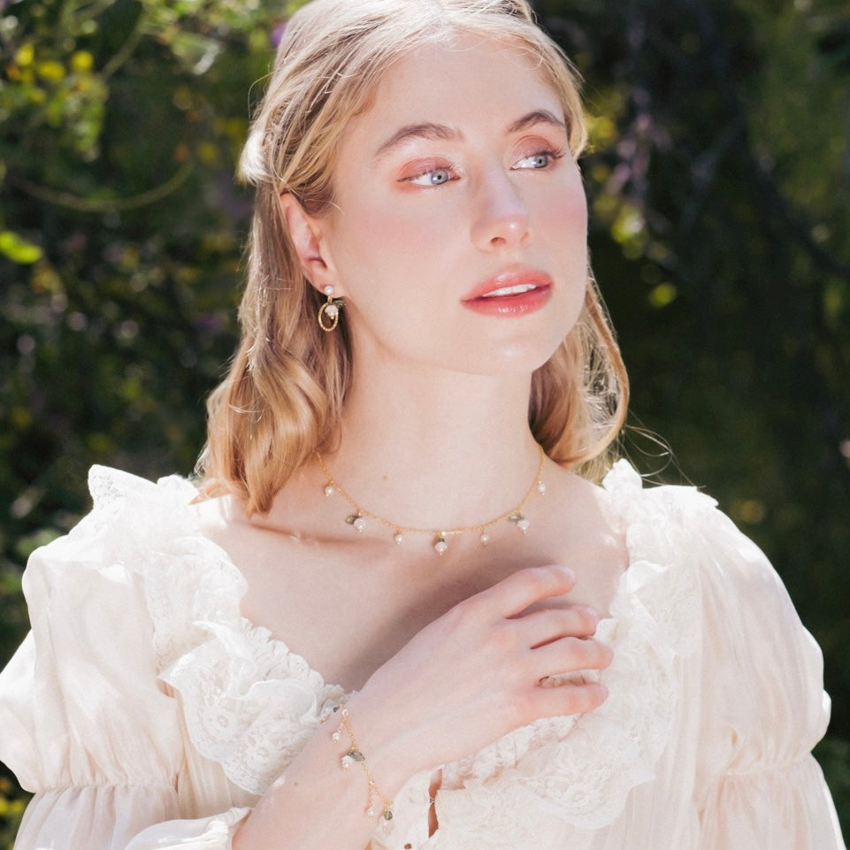 Matching earring, bracelet and necklace set.