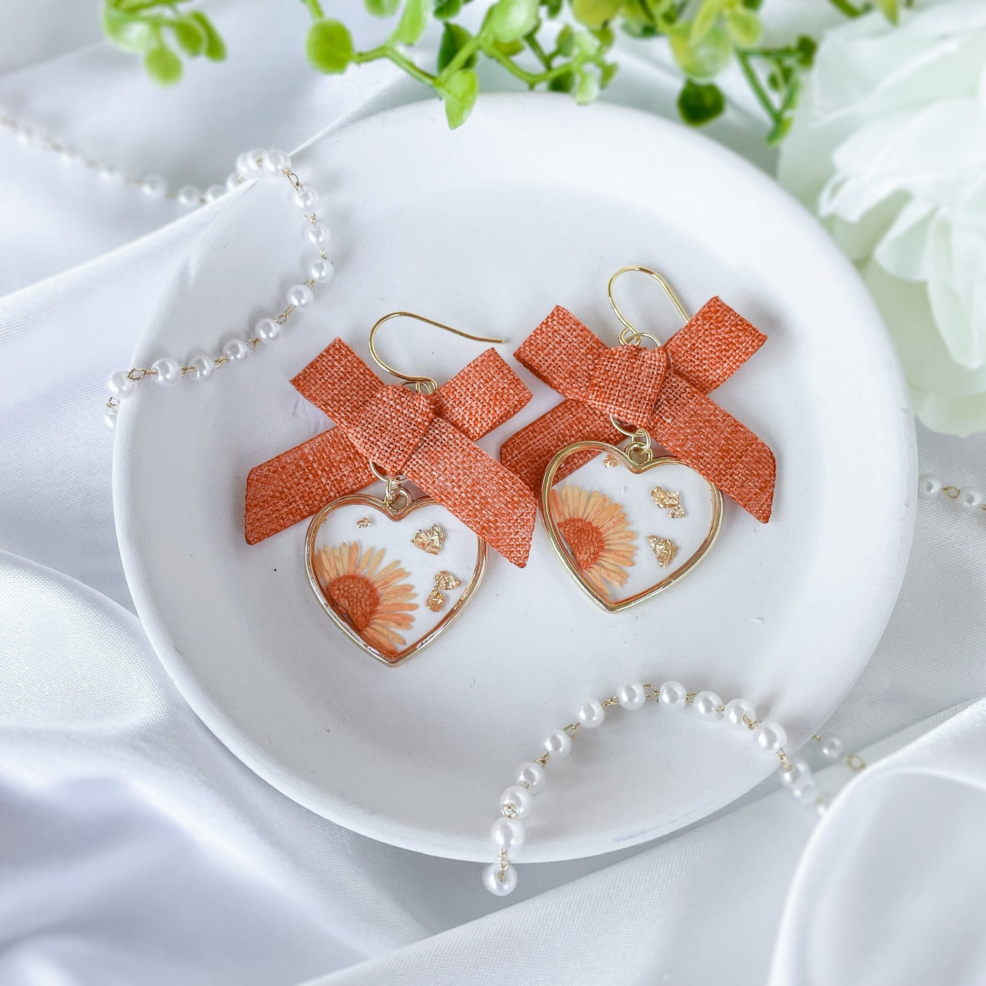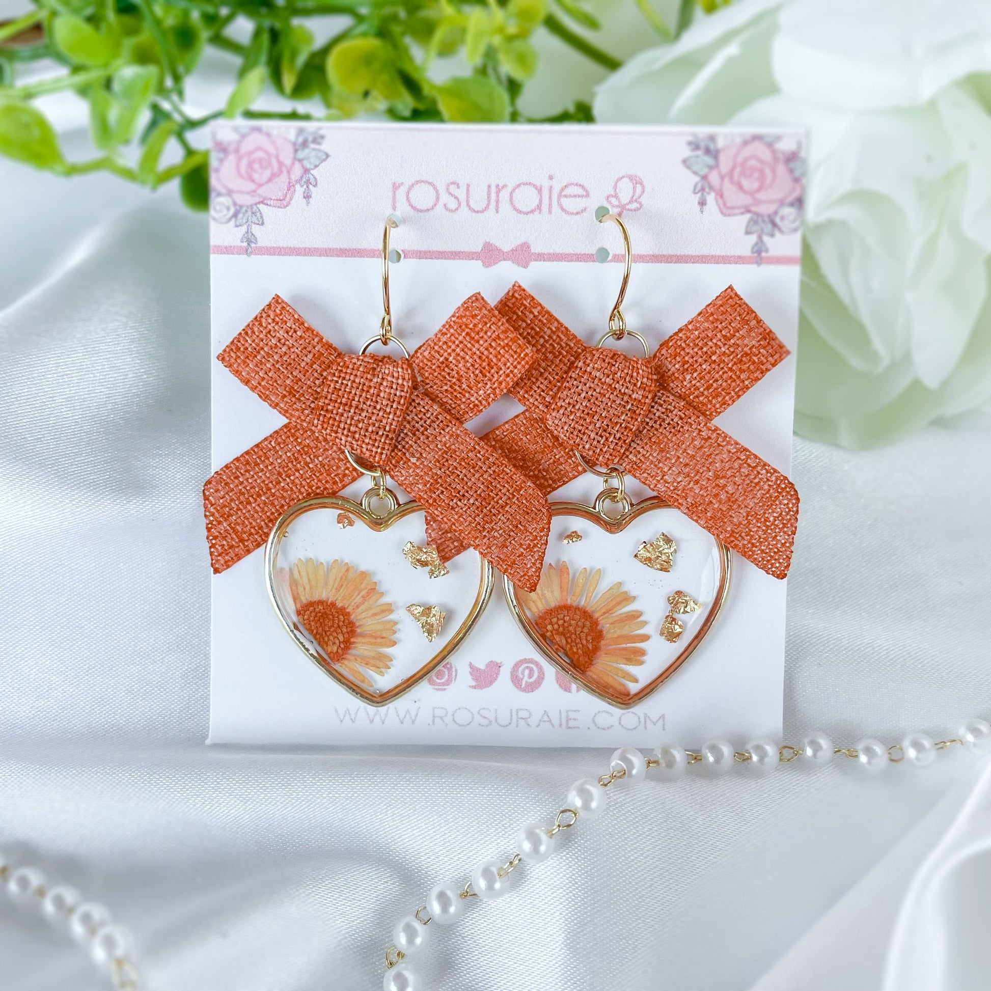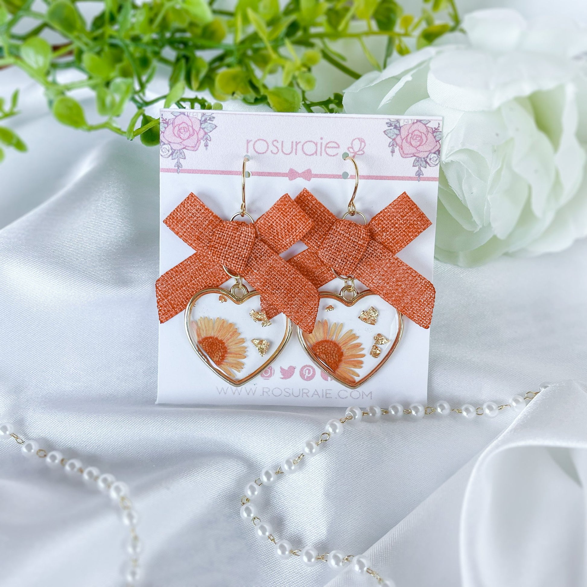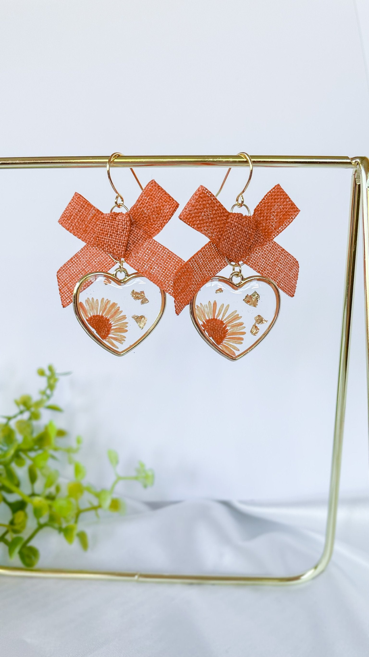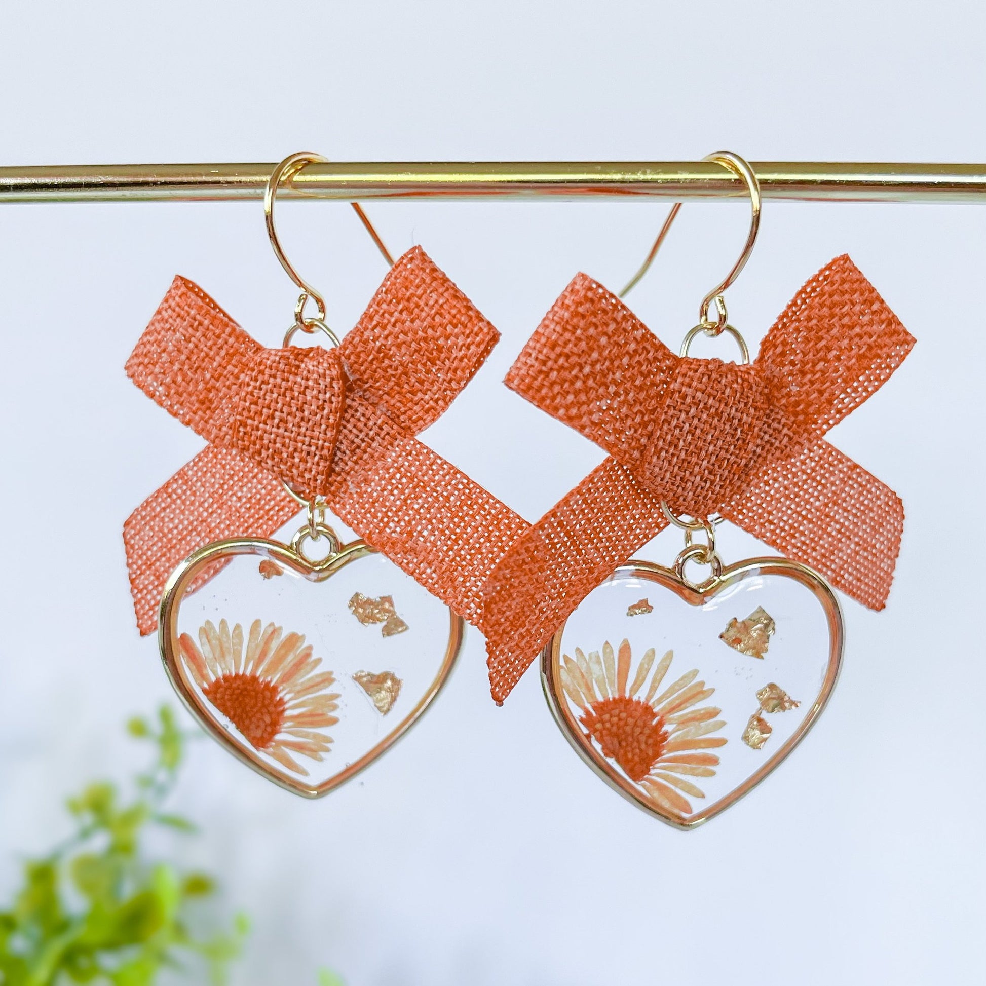 Pendants made with real preserved orange daisy and clear bio-resin.