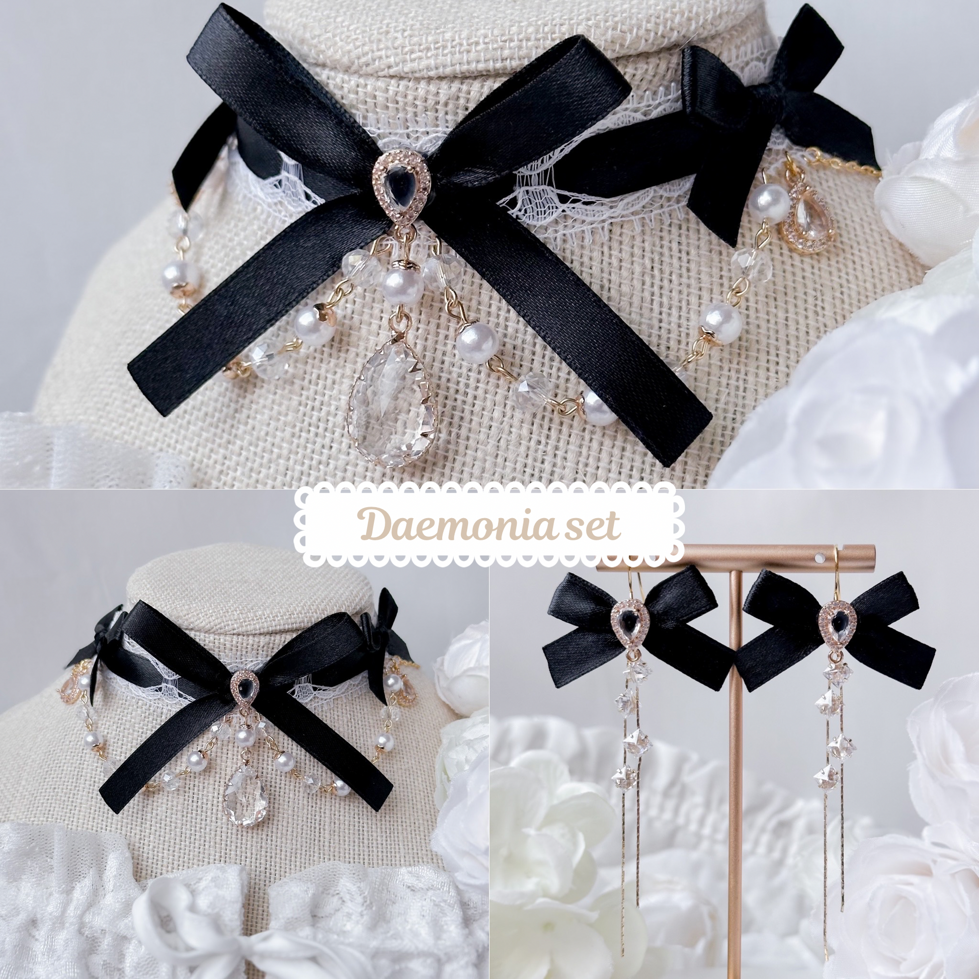 Matching black earrings and choker set.
