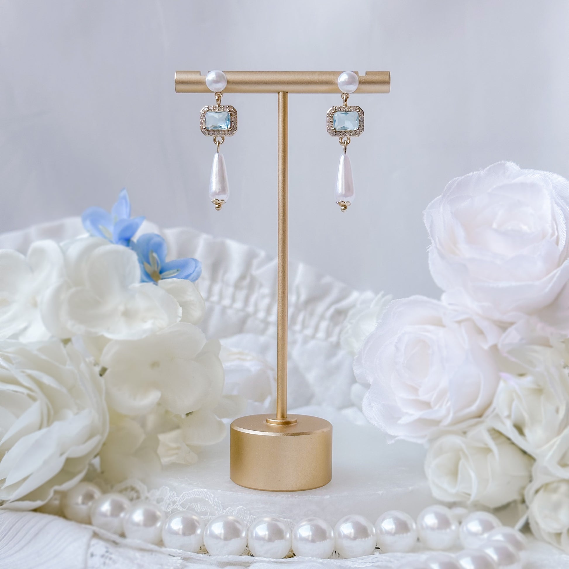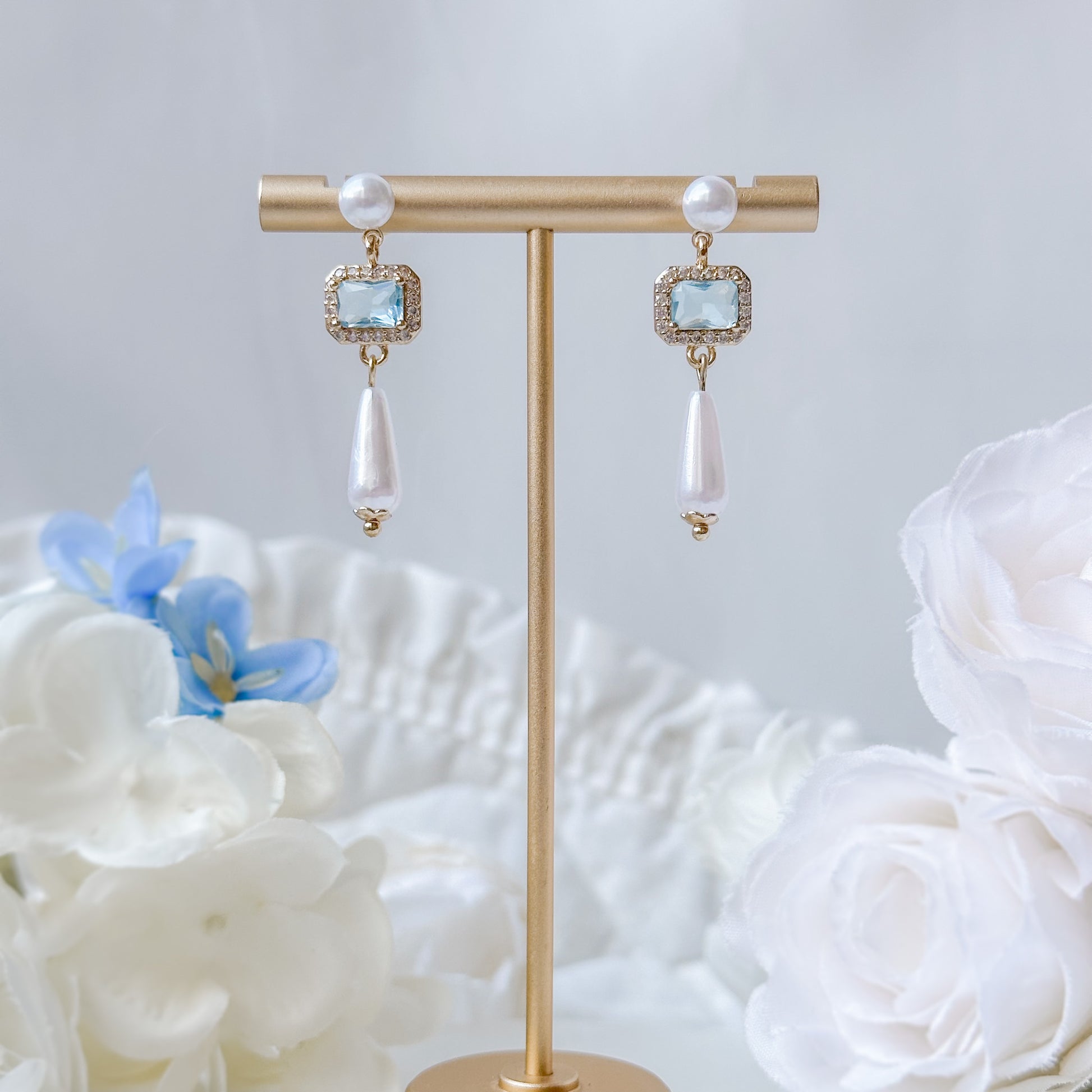 Blue crystal earrings.