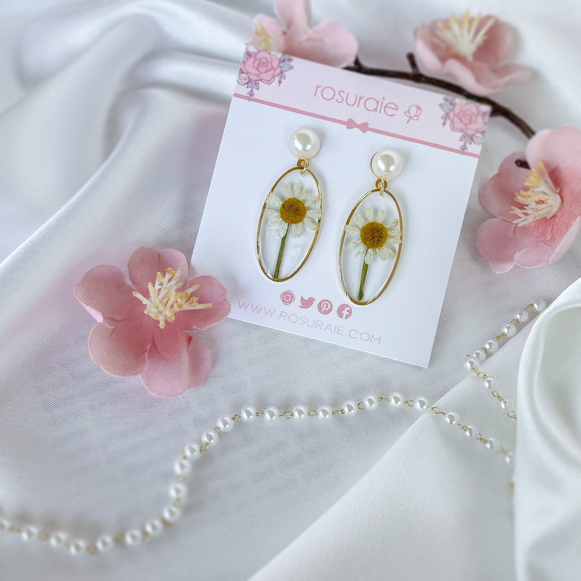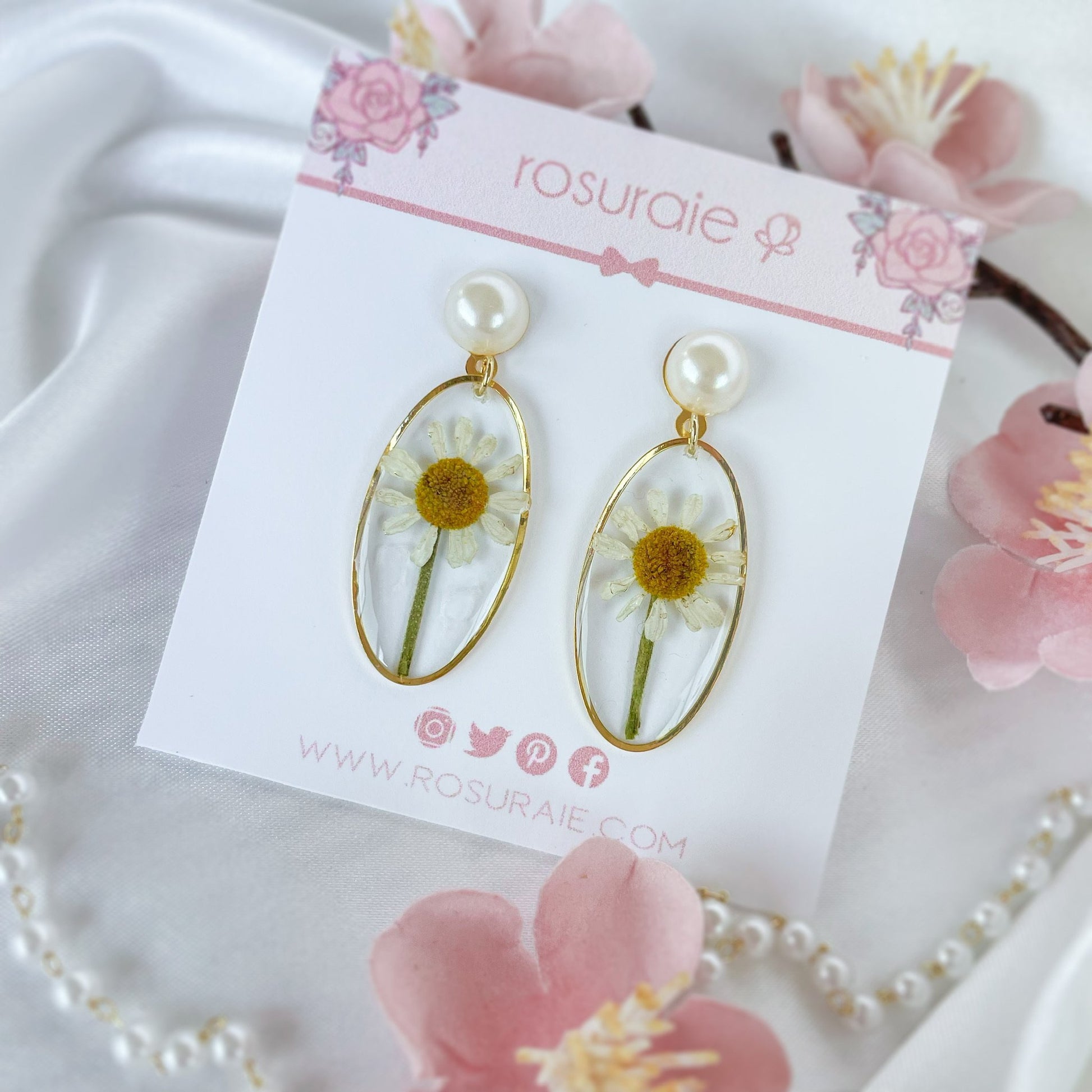 Each pendant is filled with real dried flowers and clear bio-resin for a glass-like finish.