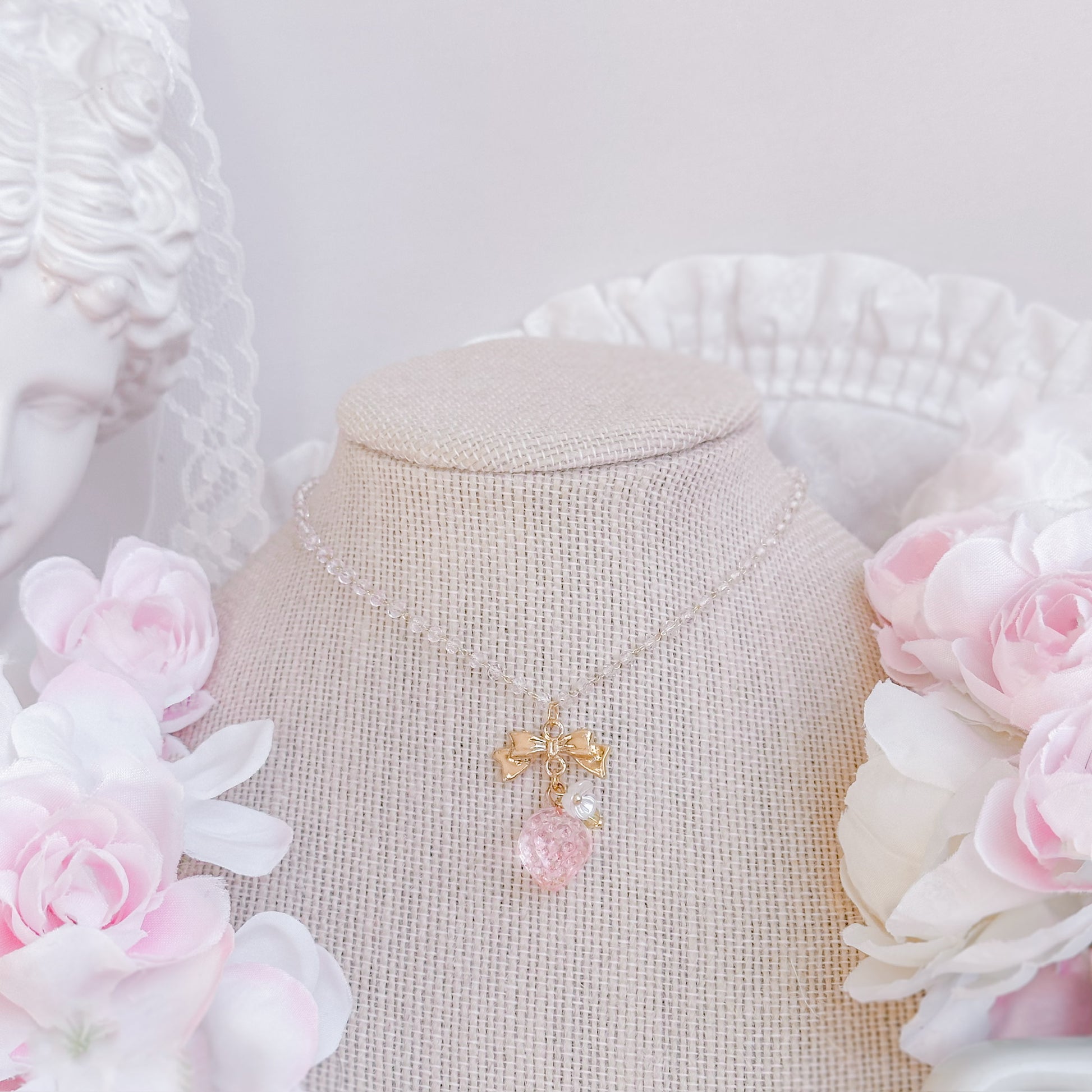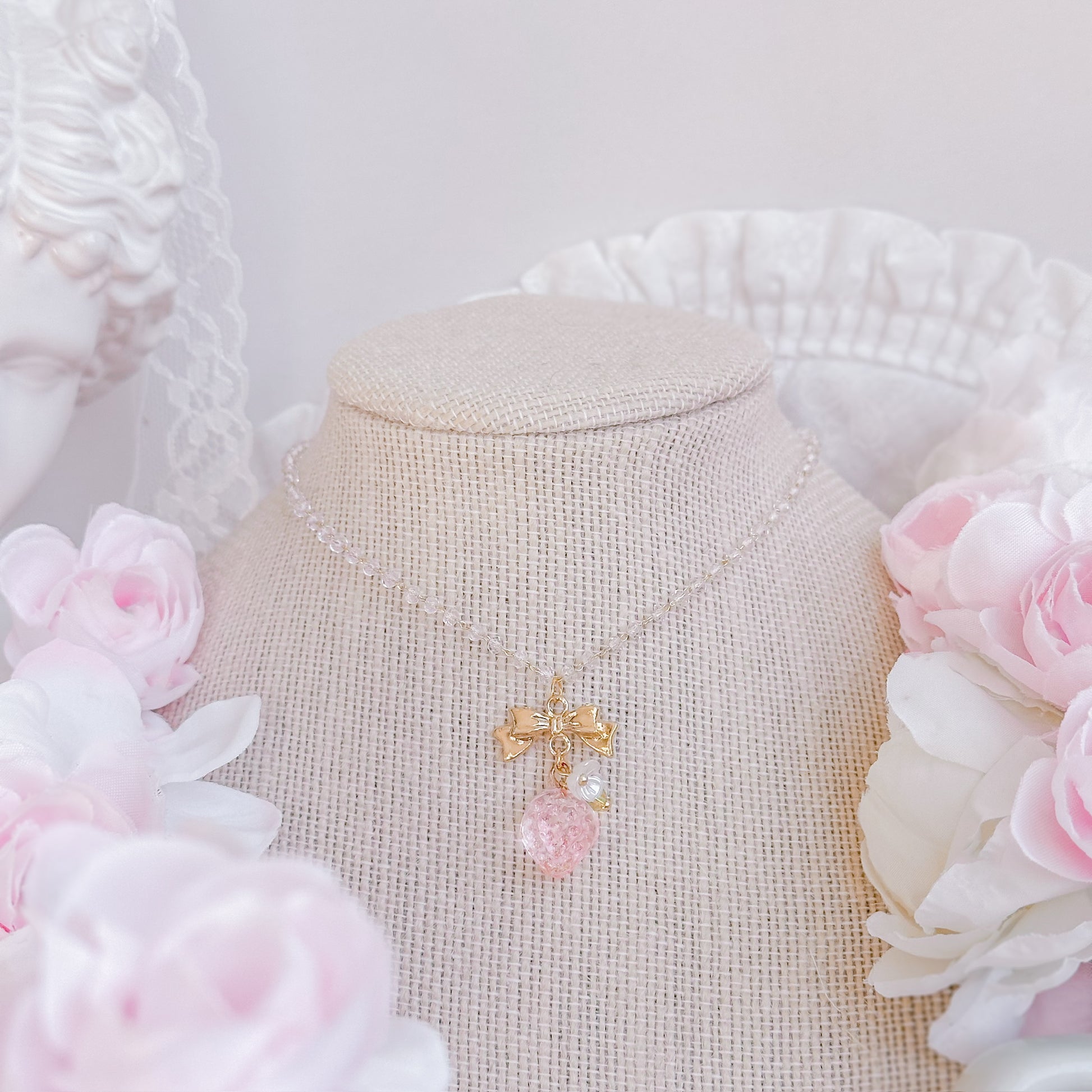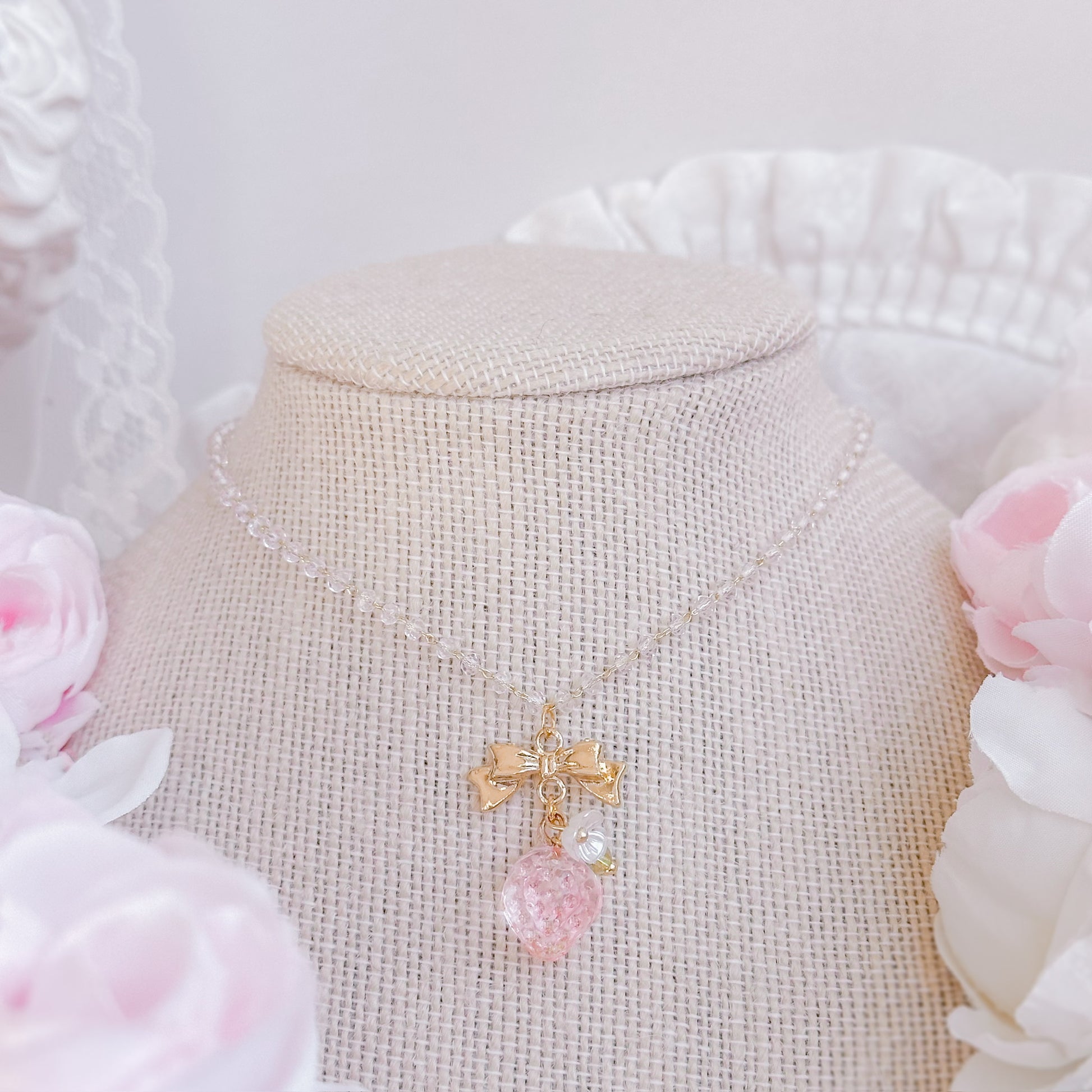 Pink strawberry crystal necklace.
