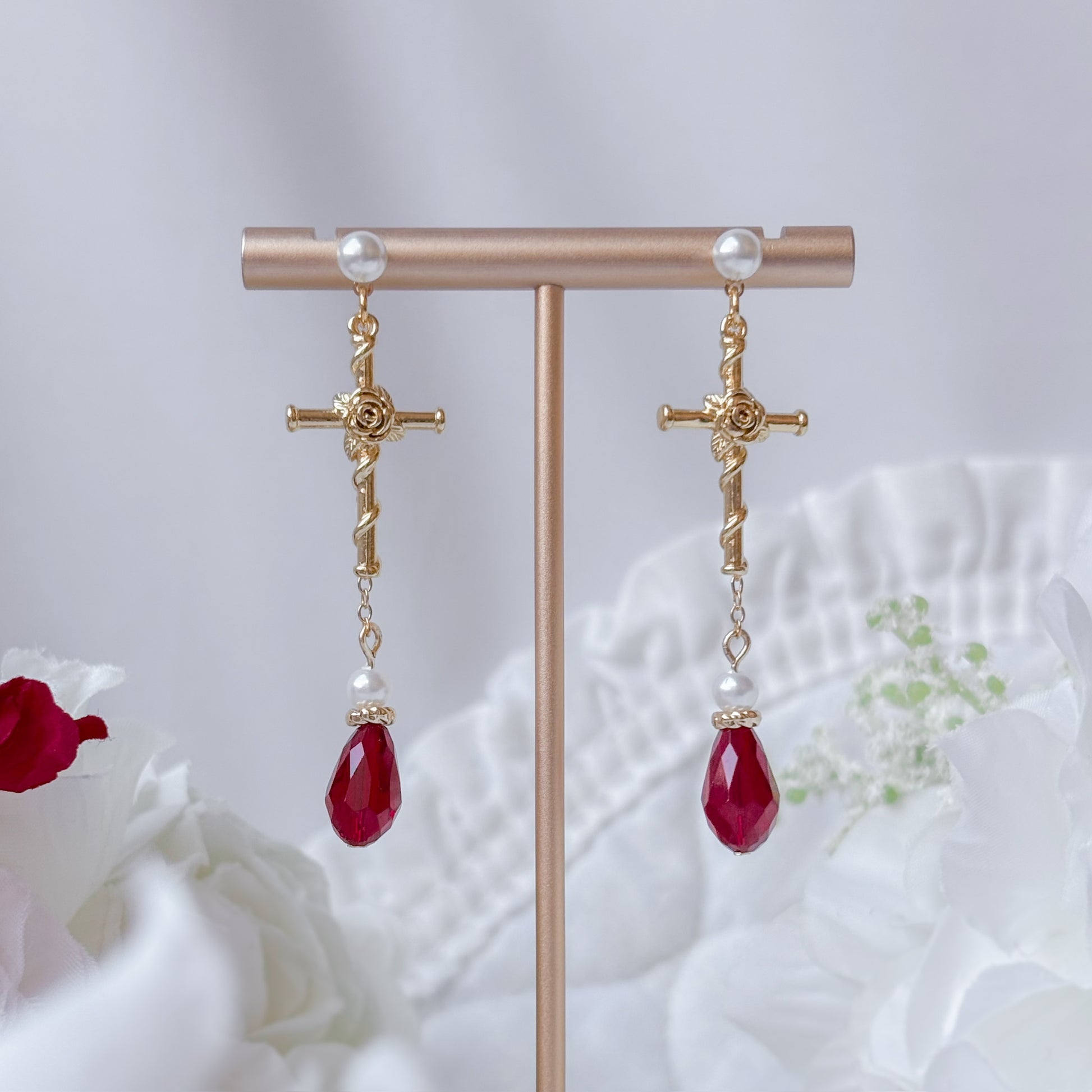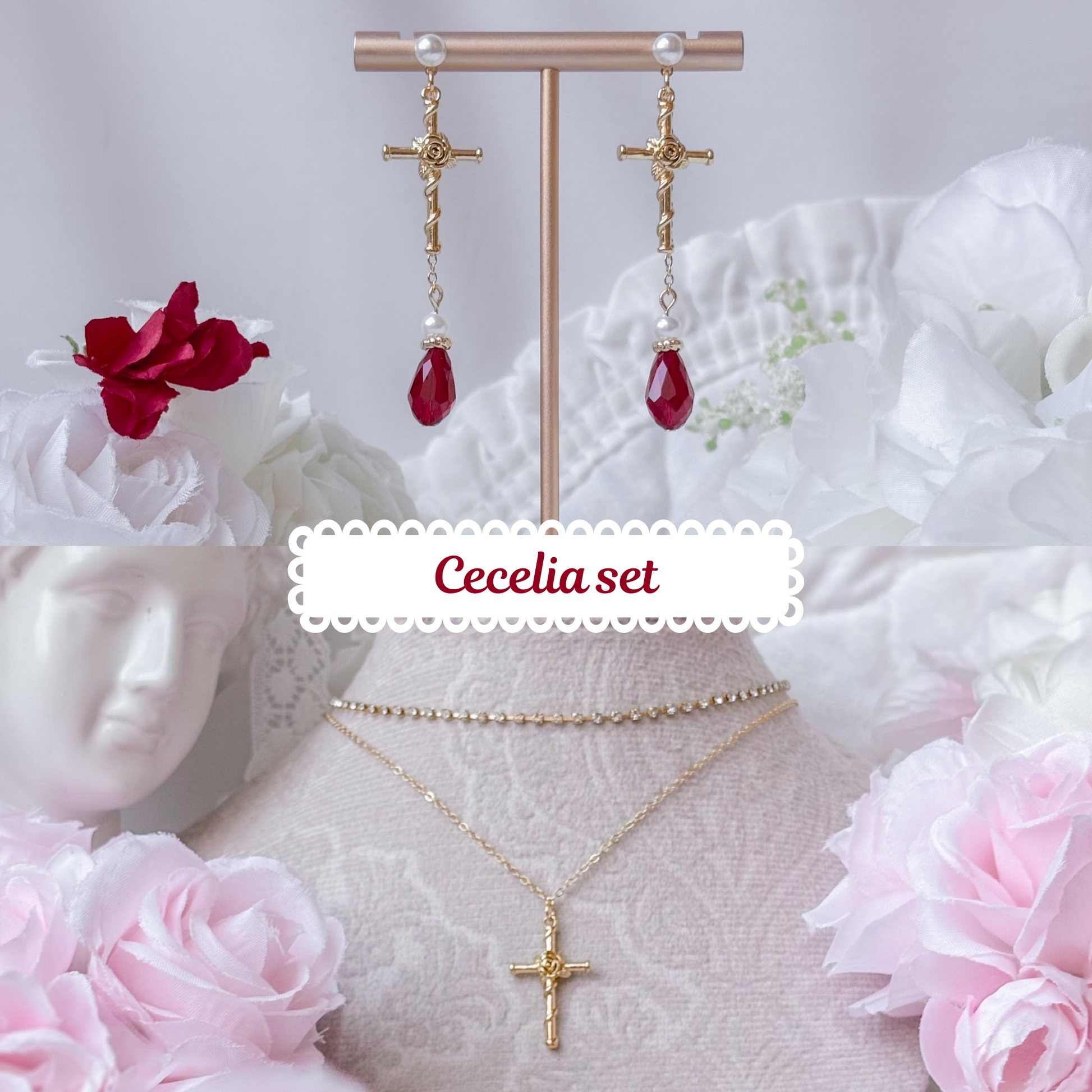 Matching rose cross necklace and choker.