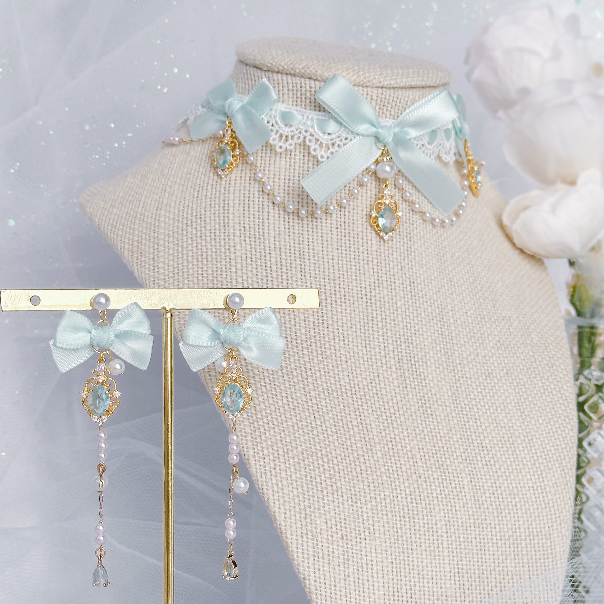 Matching earring and choker set.