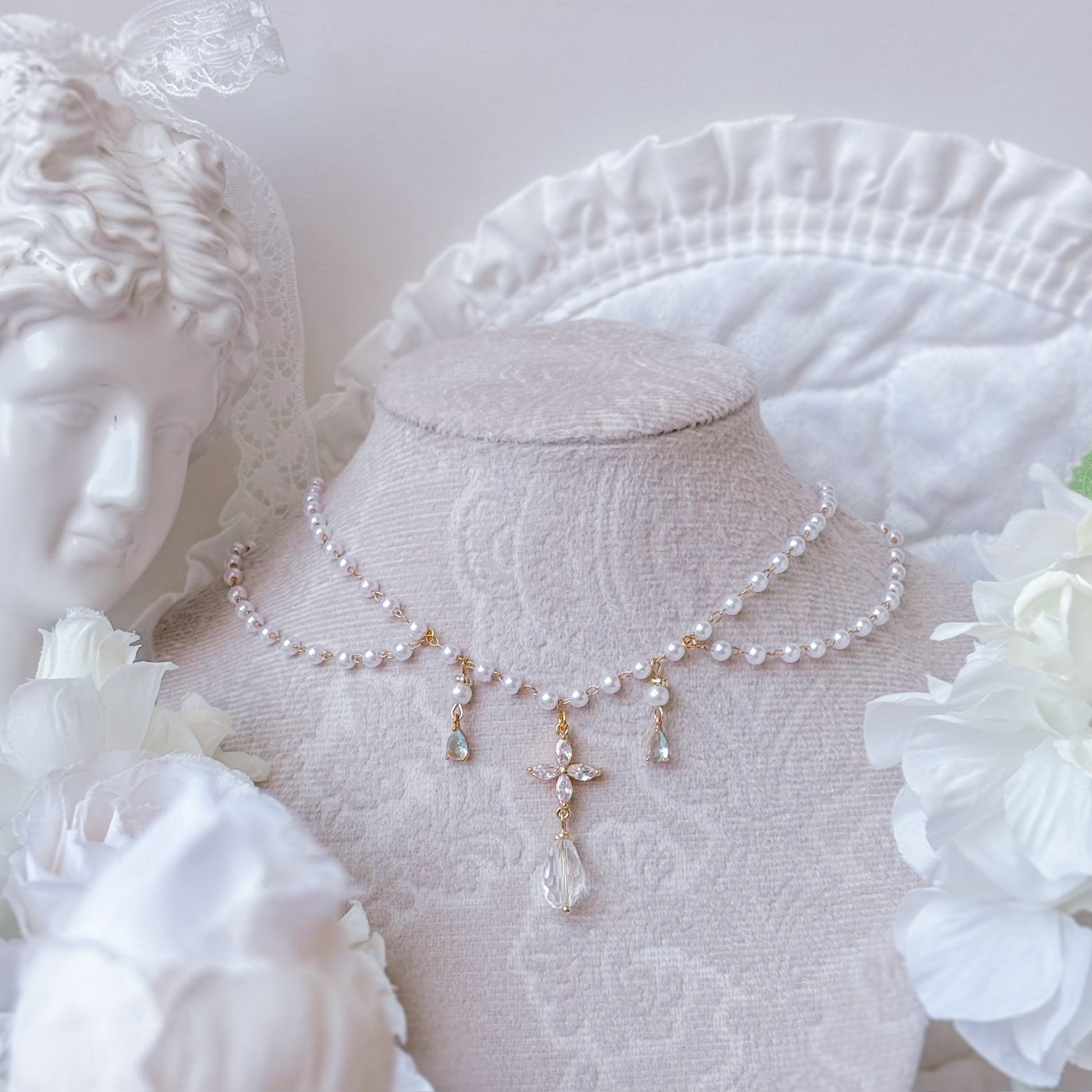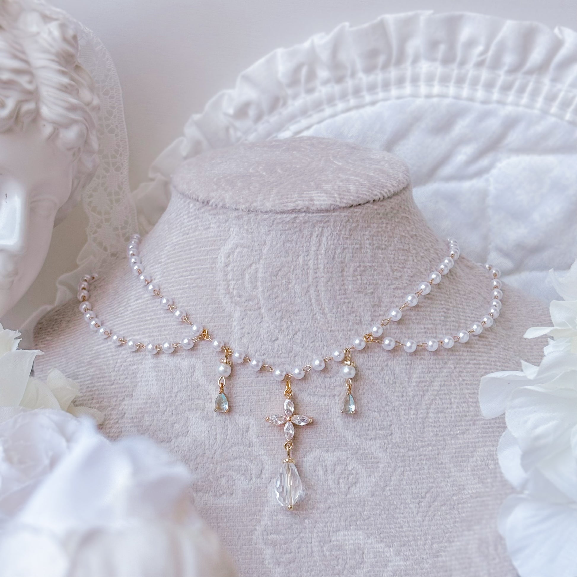 Crystal pearl necklace.