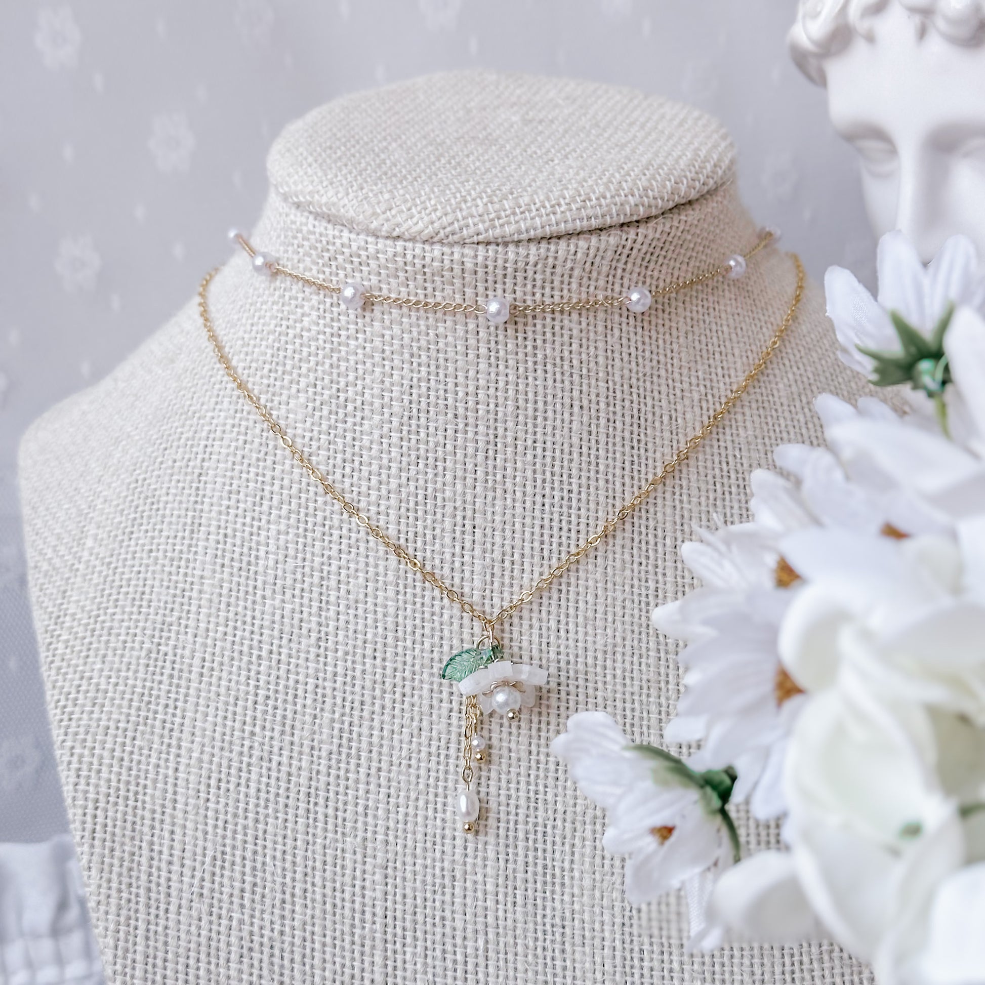 Matching necklace and earring set.