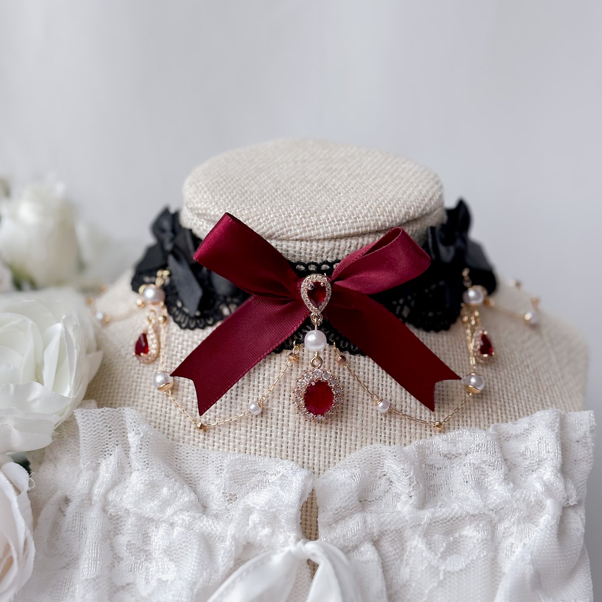 Matching black lace choker set.