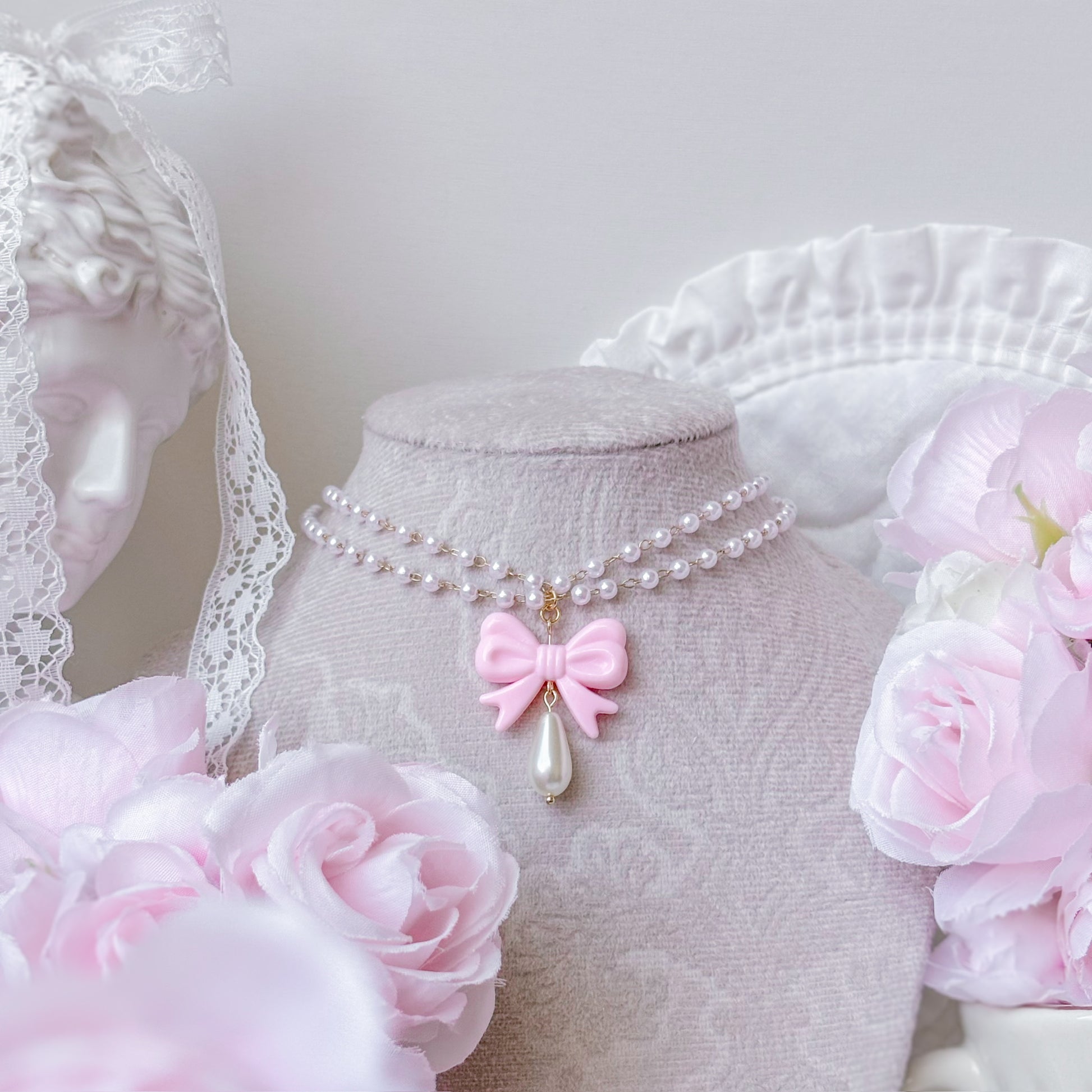 Pearl bow necklace.