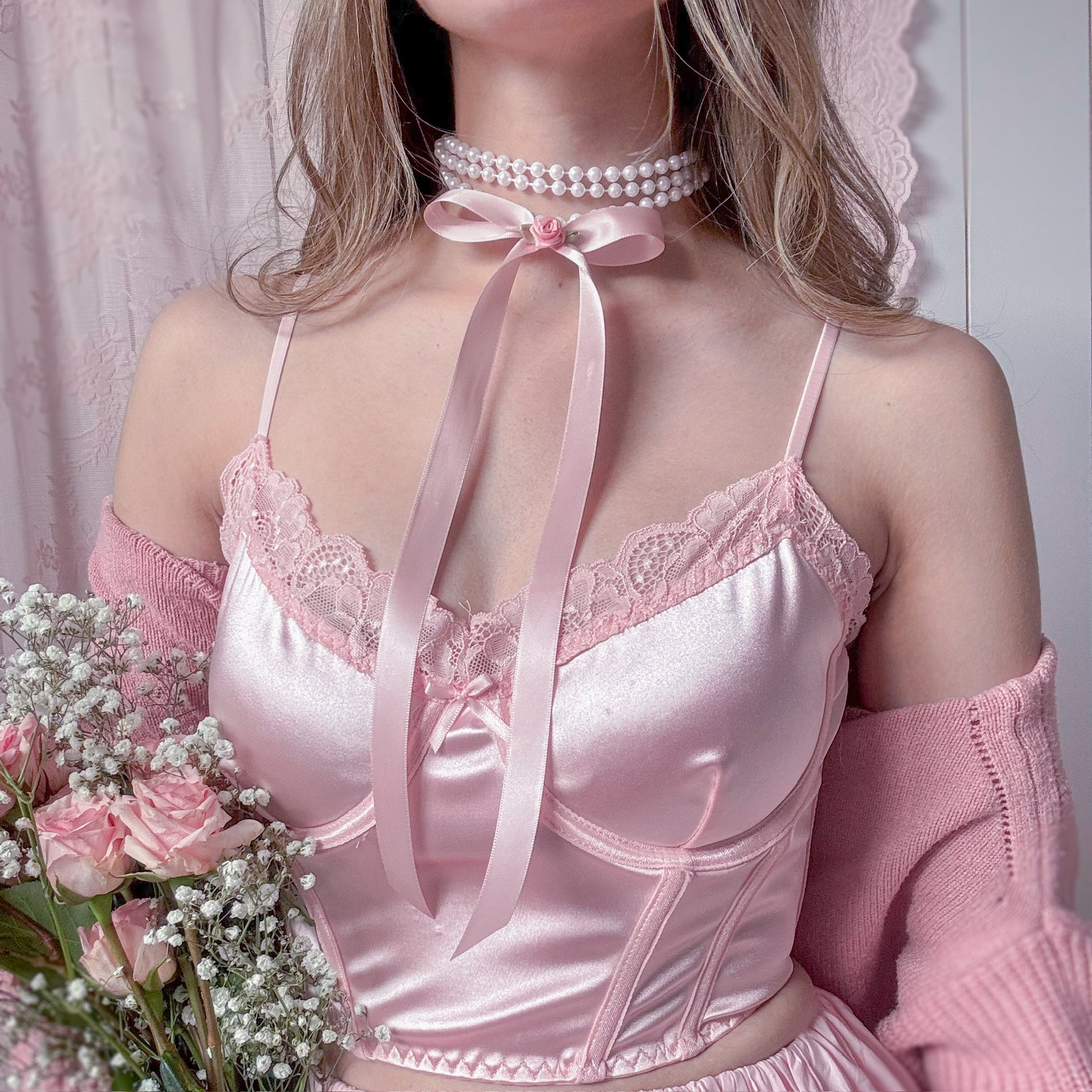 Pearl wrap around bow necklace.