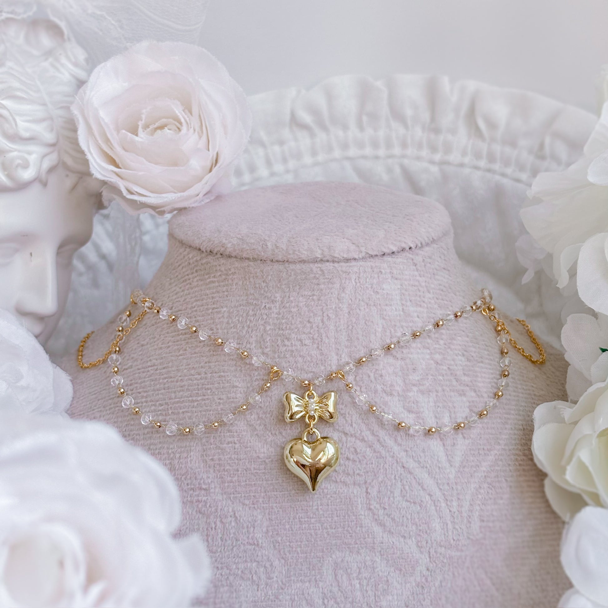 Golden heart necklace with crystal chain.