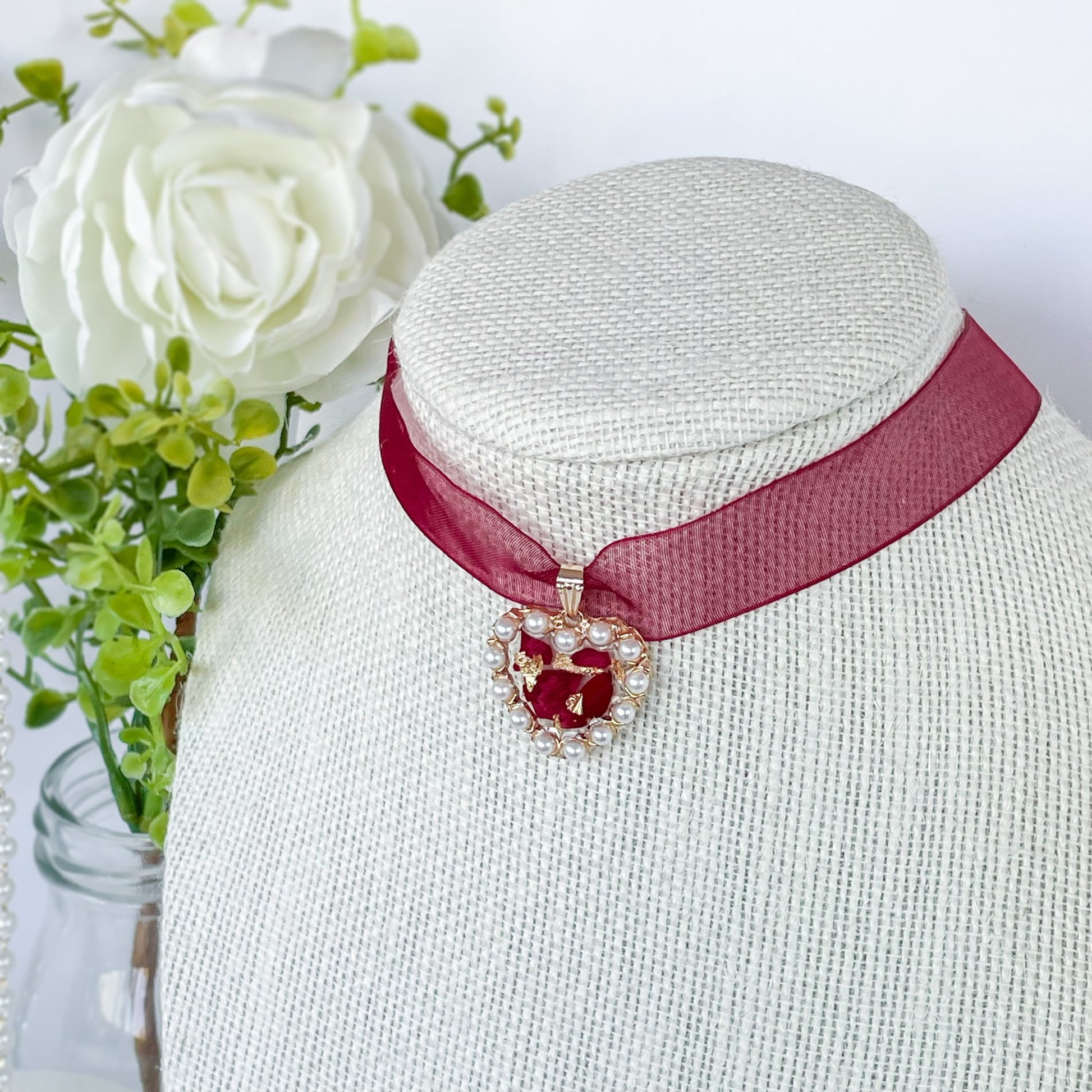 Pendants made with real preserved rose flower petals and clear bio-resin.