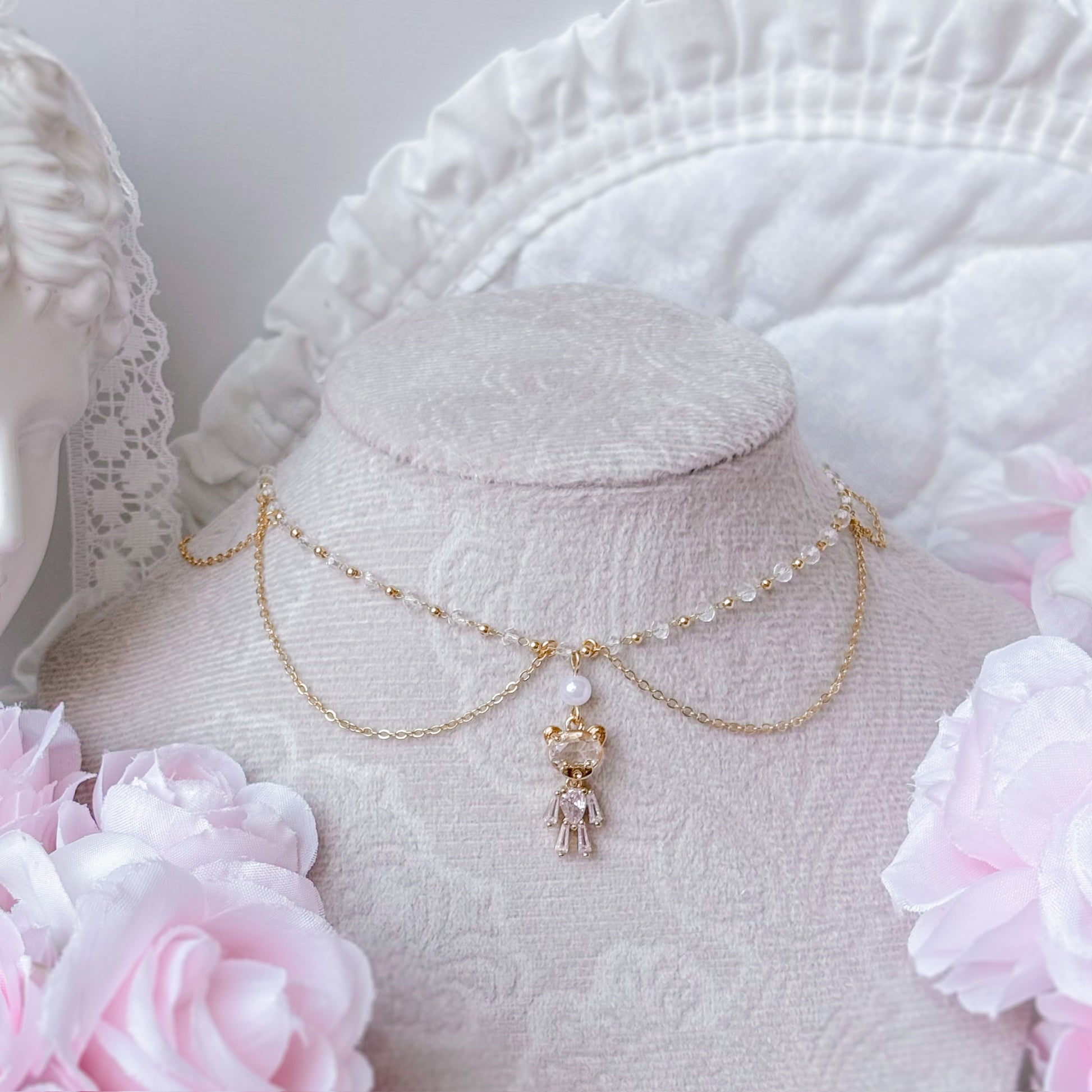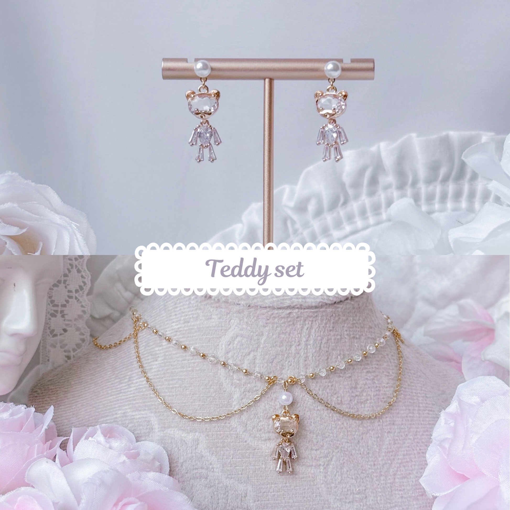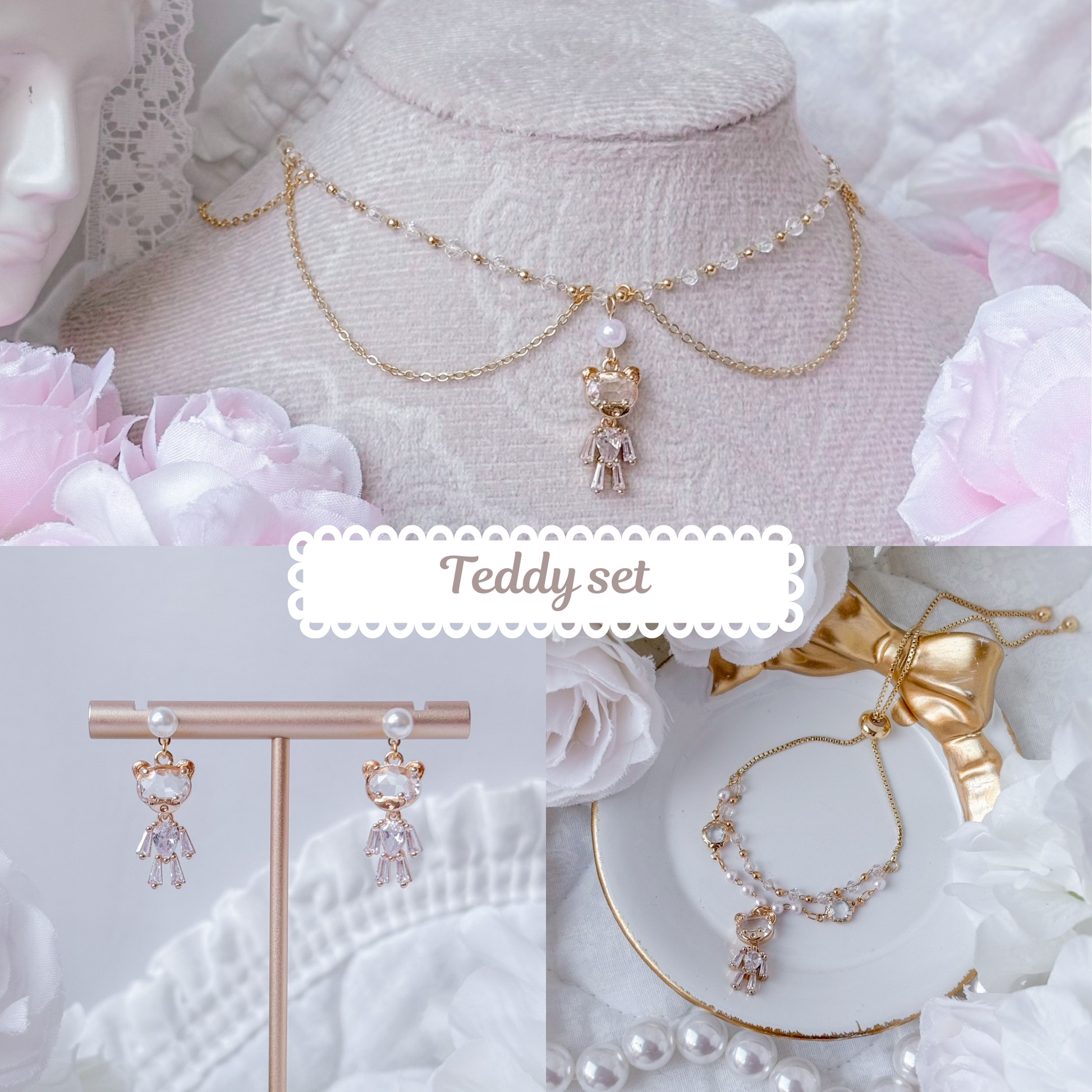 Matching teddy bear crystal necklace, earrings and bracelet.