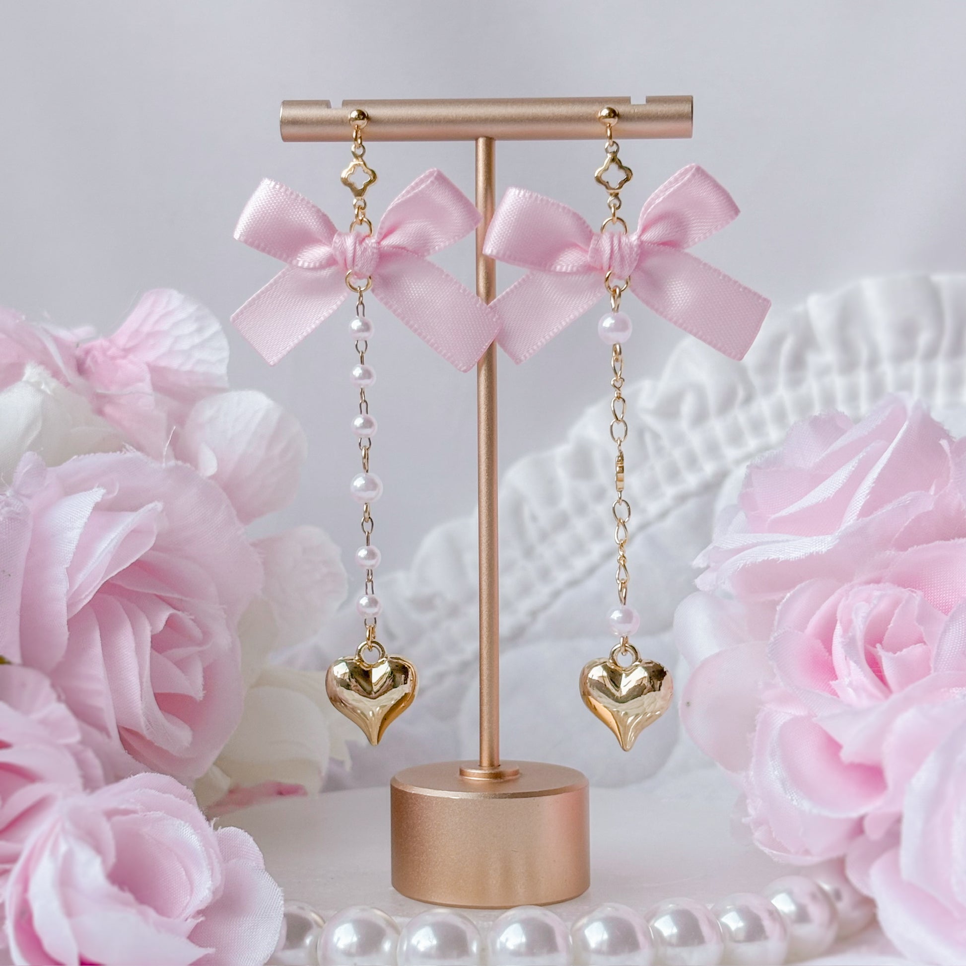 Matching pink satin choker and earring set.