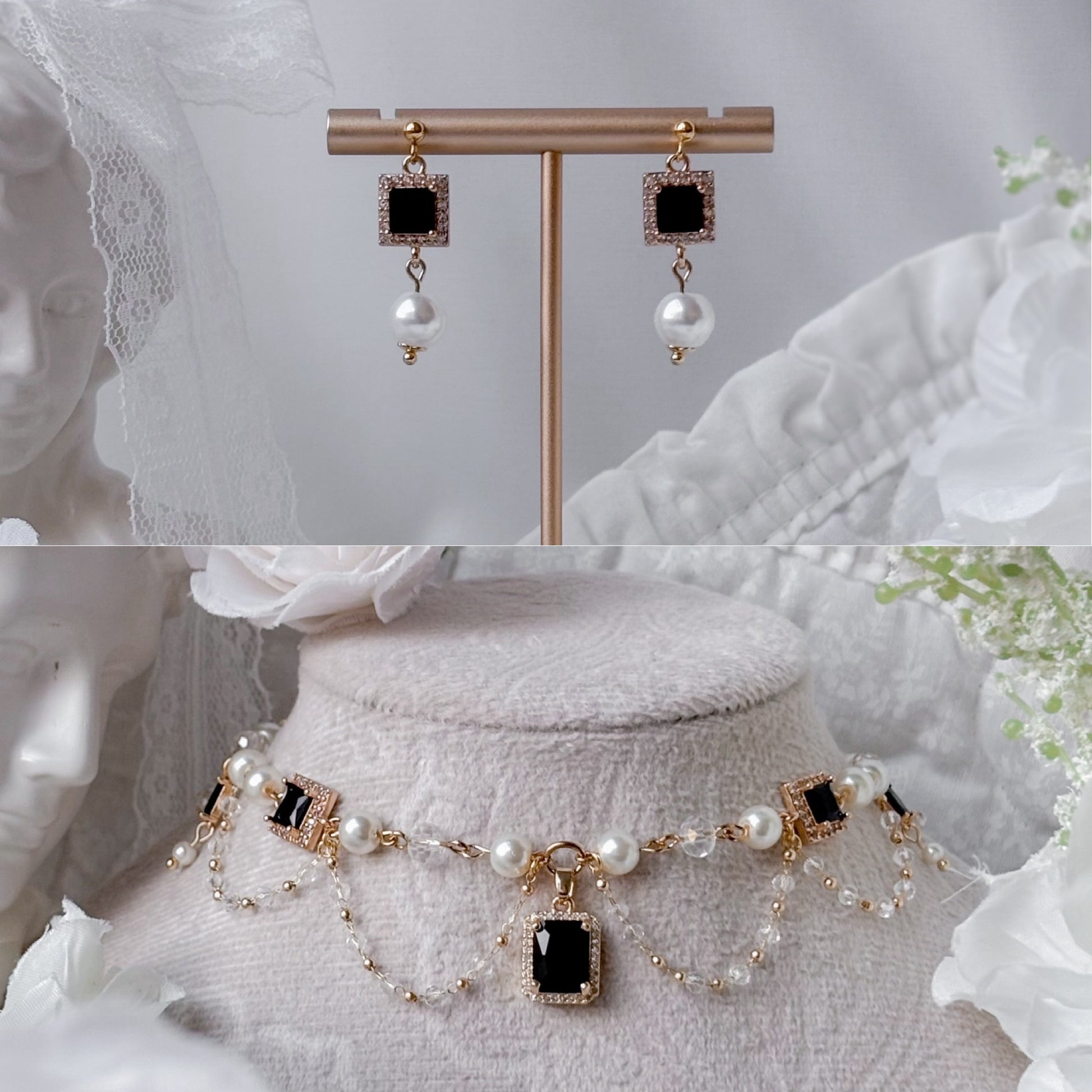 Matching necklace and earring set.